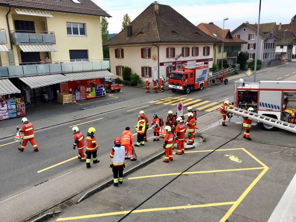 Bei der heutigen Gesamtübung wurde ein Einsatz mit Brand simuliert.